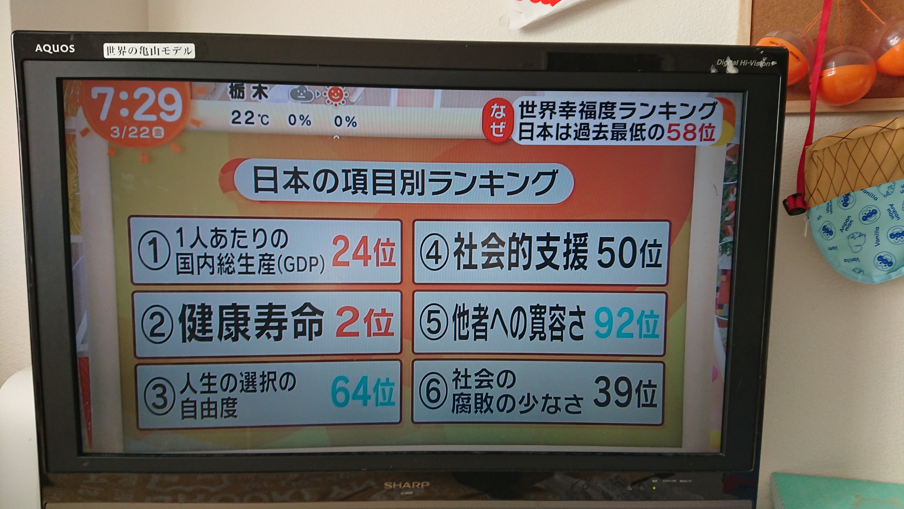 日本人の幸福度は58位。過去最低。