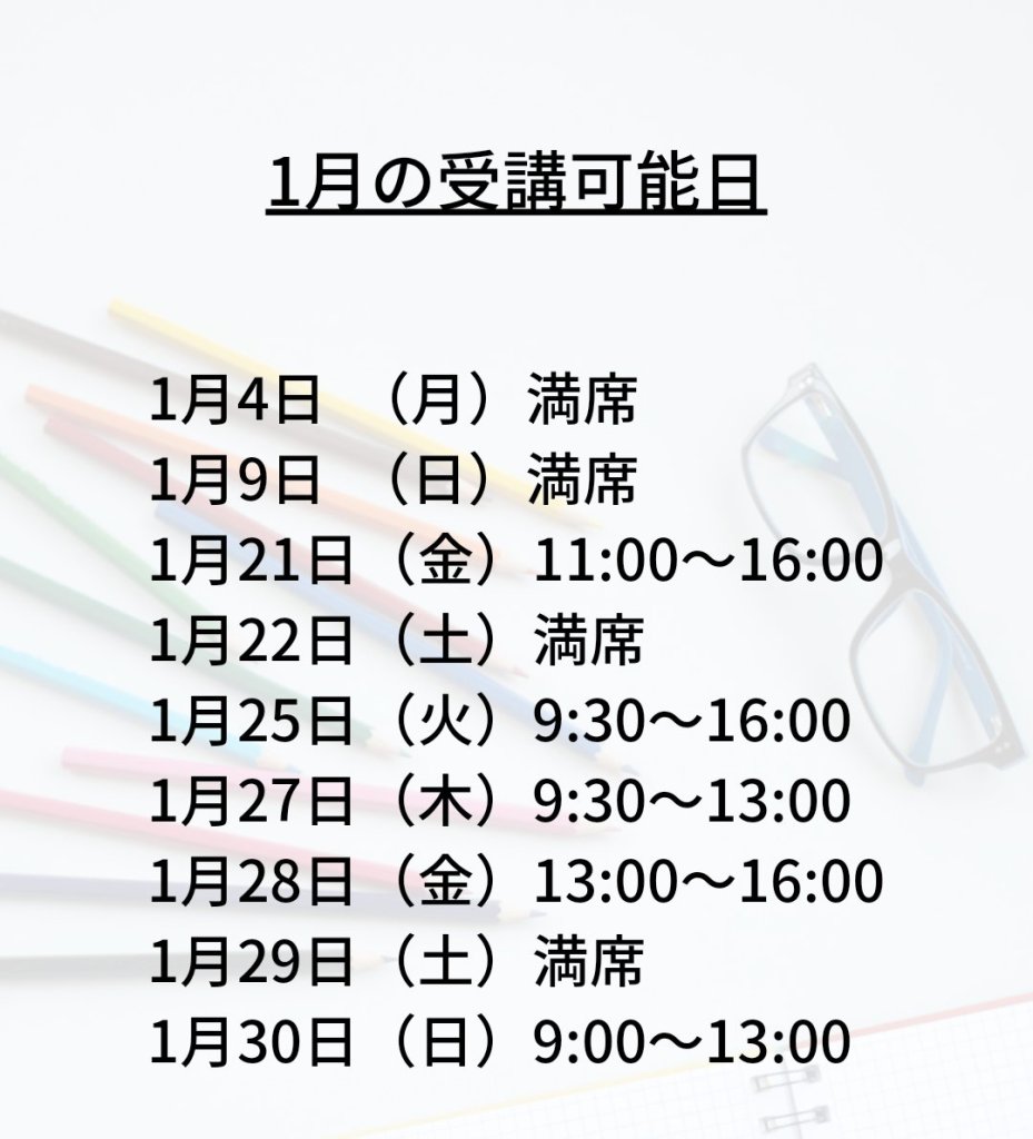1月の受講可能日は、全て満席となりました。(1月11日時点)