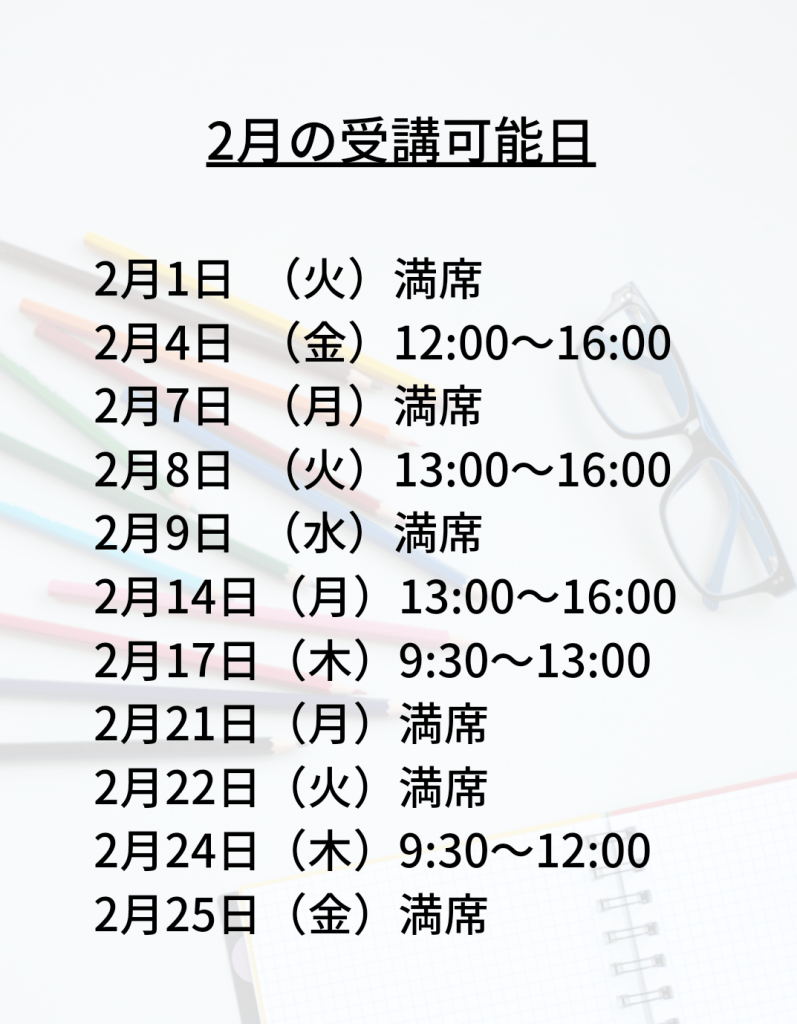 2月の受講可能日はわずかとなっています(2月5日時点)