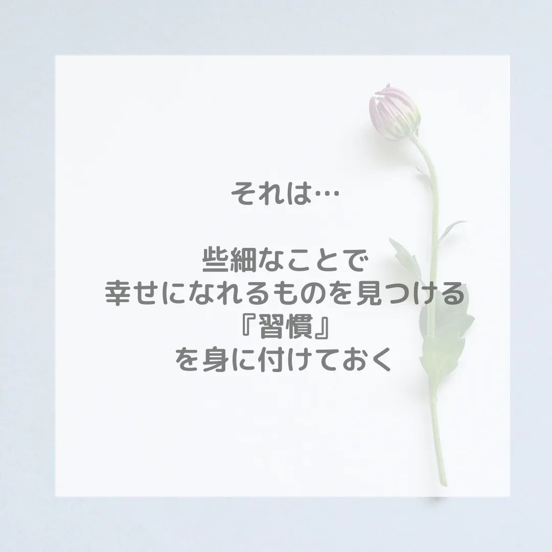 些細なことで、幸せになれるものを見つける『習慣』を身に付けておく、です。