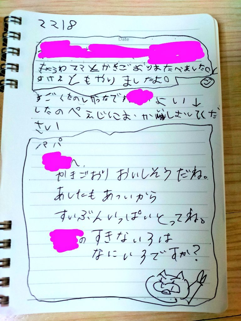 パパ書いてくれたかなあ~。と娘が寝ぼけて日記を開いてみたら、