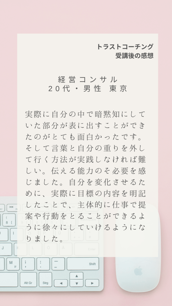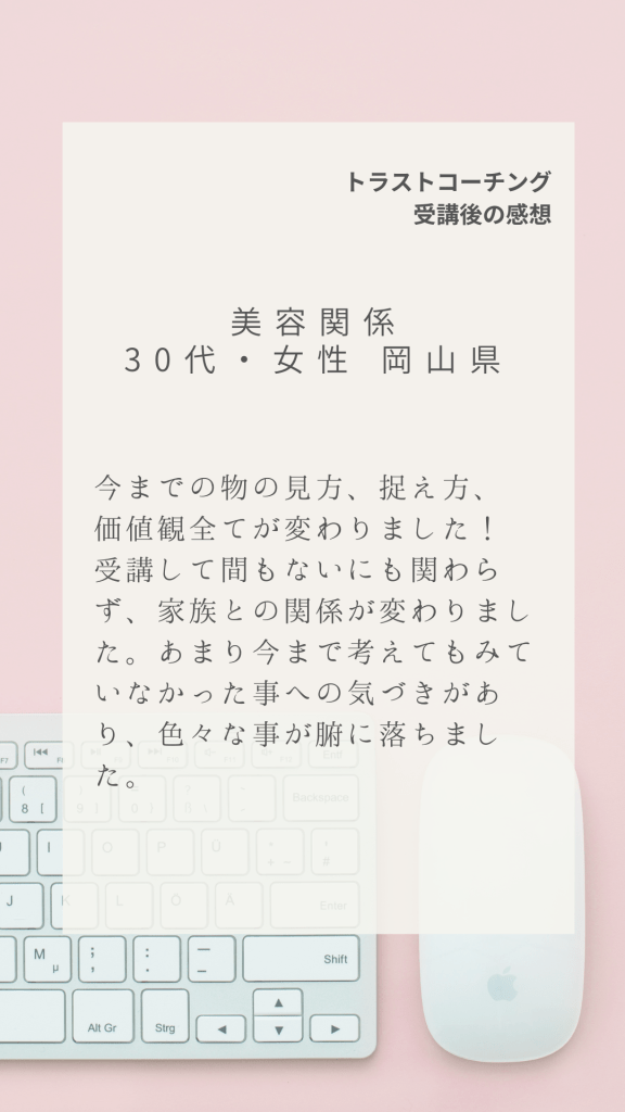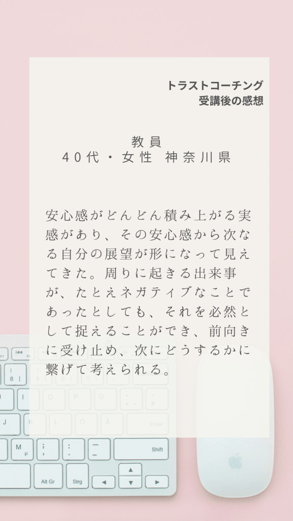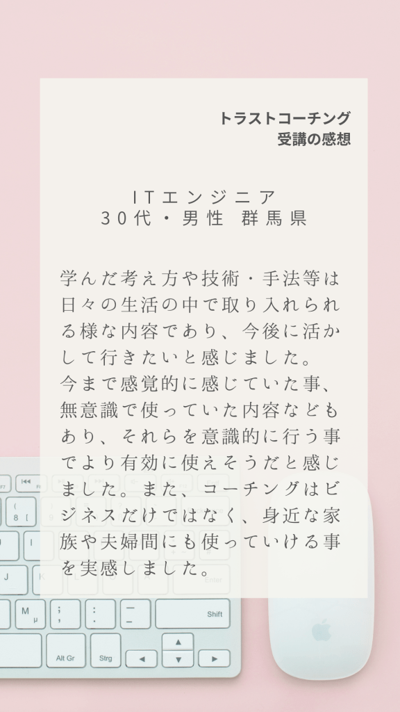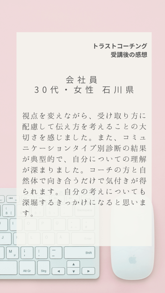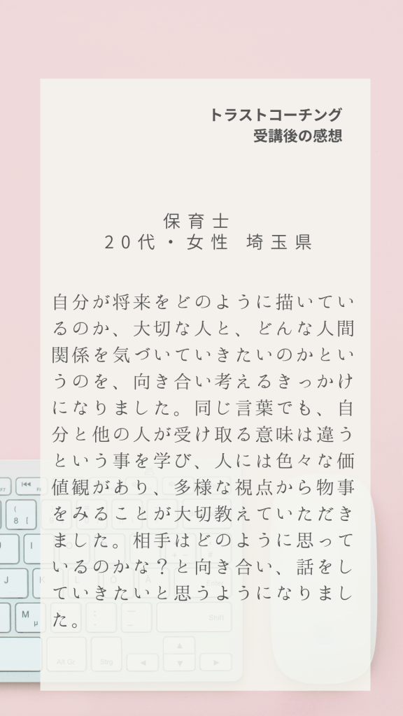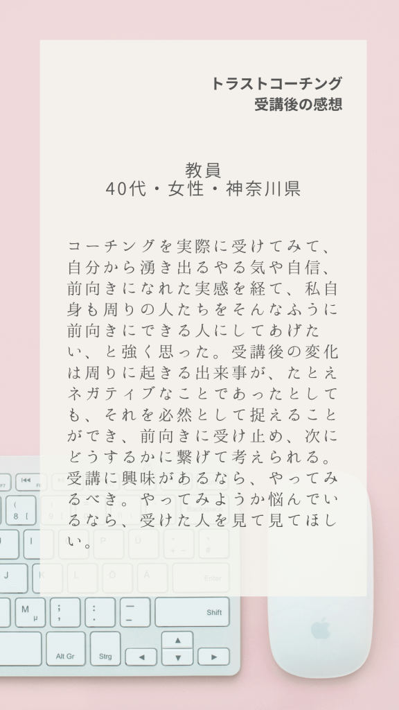 全国各地からトラストコーチングにご受講いただいた感想の一部です。