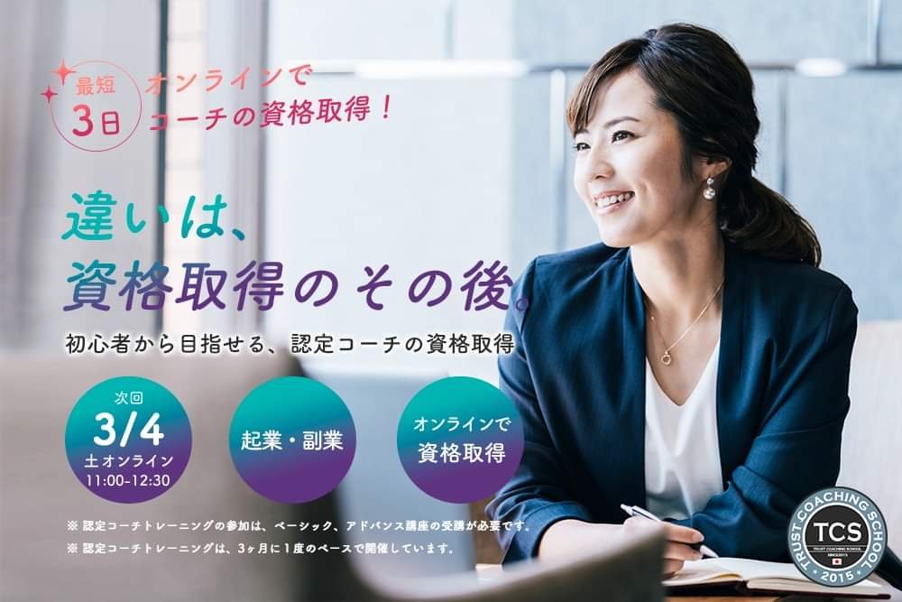 認定コーチの資格取得トレーニングを3/4に開催いたします。