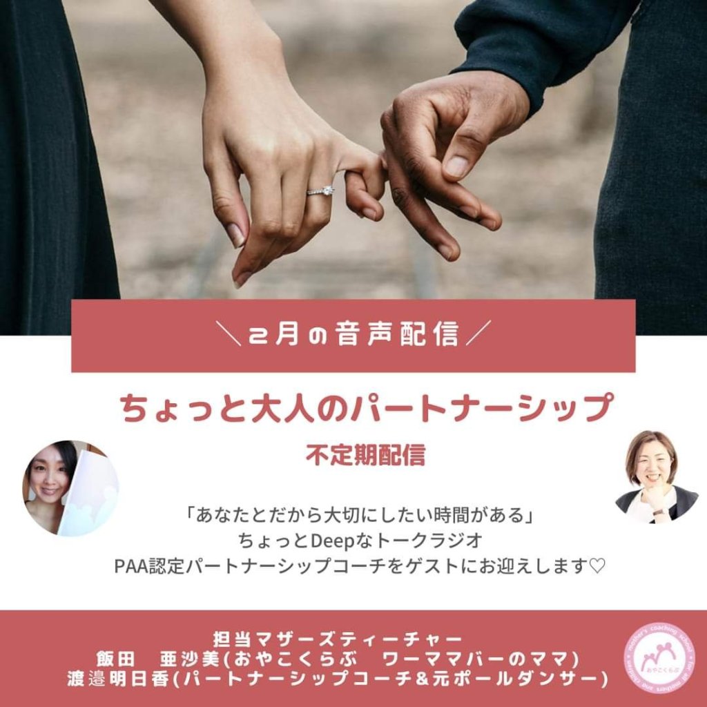お久しぶりに、私がパーソナリティを務めいます”おやこくらぶラジオ”『ちょっと大人のパートナーシップラジオ』のご紹介です。